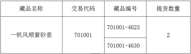 2018004關(guān)于交易藏品《一帆風(fēng)順紫砂壺》提貨公告